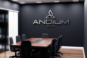 • Noir : La couleur noire de la typographie pour « ANDIUM » évoque le professionnalisme, la sophistication et la confiance. Le noir est souvent associé à la qualité et à l’élégance, ce qui en fait un choix parfait pour renforcer l’image haut de gamme de l’entreprise.