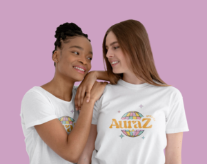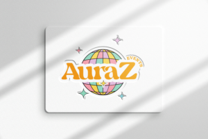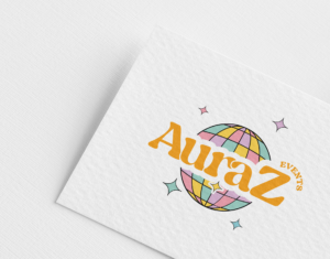 Le logo d’AuraZ Events traduit immédiatement l’essence du projet. La boule à facettes en arrière-plan est un symbole fort, universellement associé à la fête, à la musique et à la danse. Elle évoque l’ambiance des clubs et des soirées électrisantes où tout est pensé pour faire vibrer les participants. Avec ses couleurs vives et harmonieuses, elle apporte une dimension immersive qui capte instantanément l’attention.